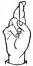 На ћирилици написано ХРАНИМИР КРНЧЕВИЋ састоји се из 16 слова [?]. Исписано ћириличном једноручном азбуком за глувонеме: